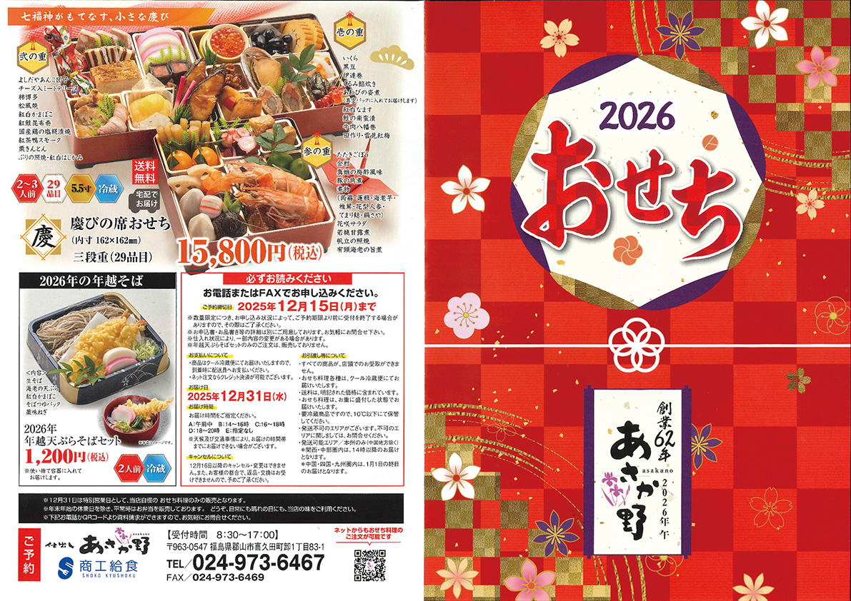 年末年始のお集まりに、仕出しあさか野のおせち料理を是非ご賞味ください。