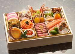 壱の重にはお正月の定番、伊達巻・松風焼・栗きんとん・黒豆など。
